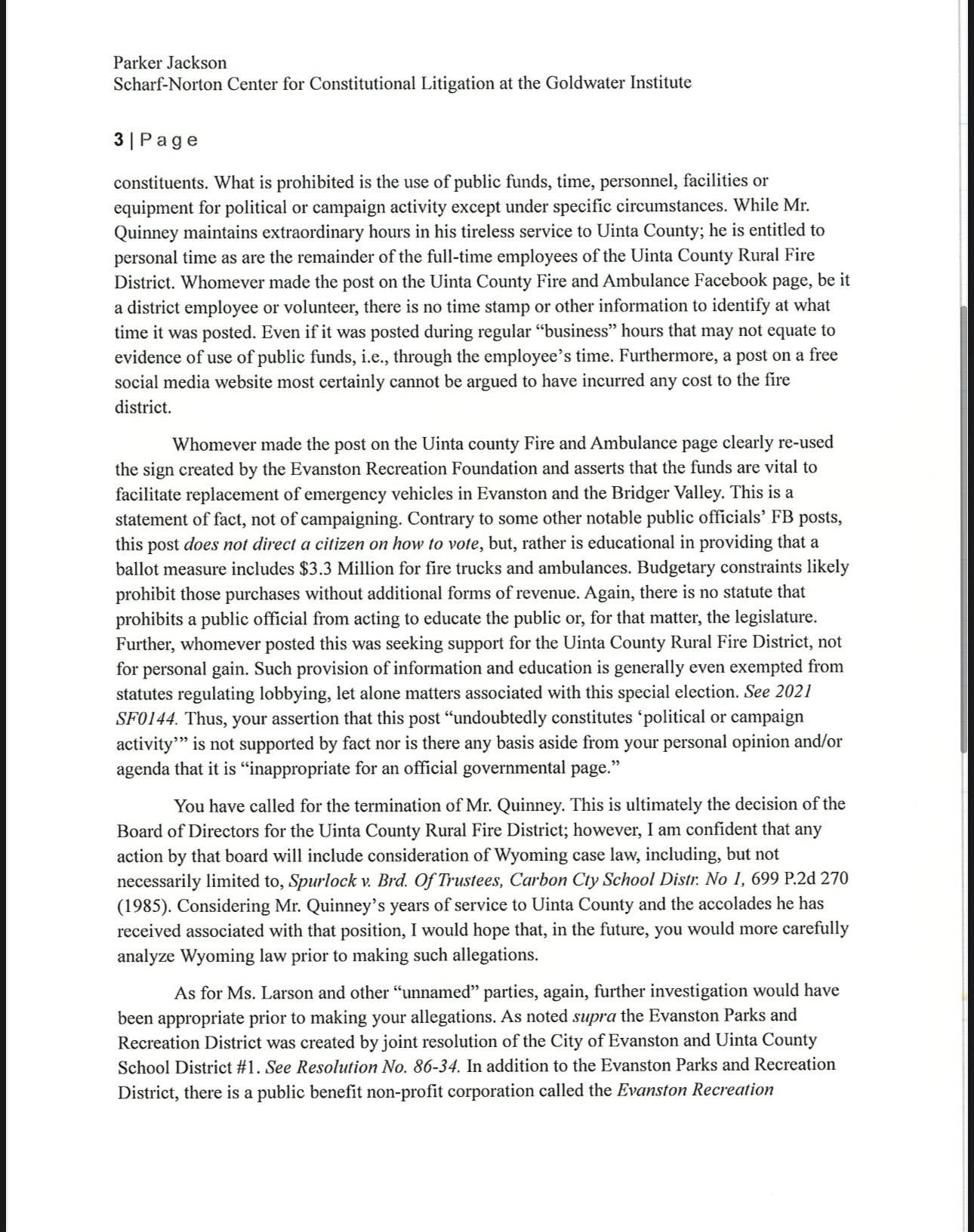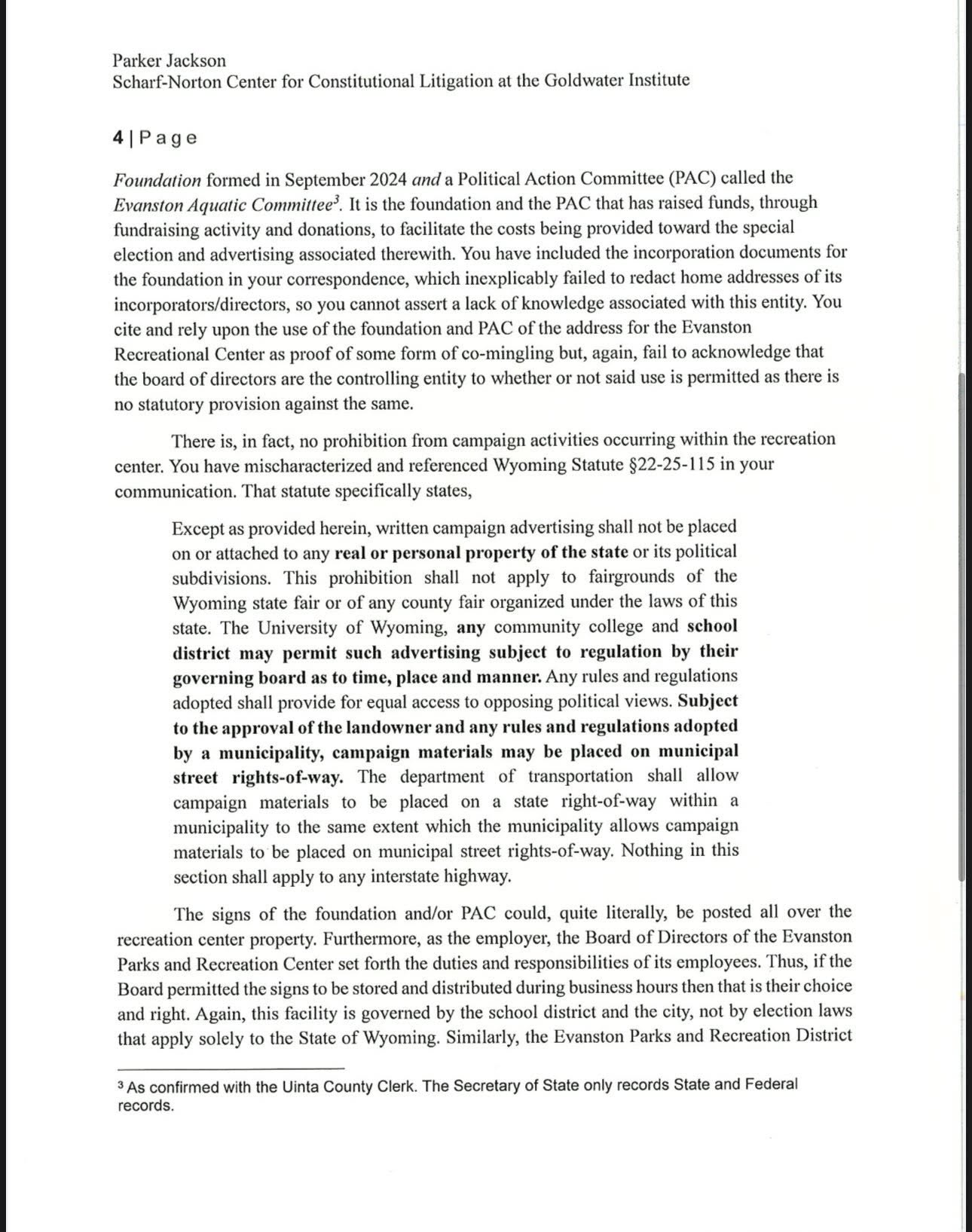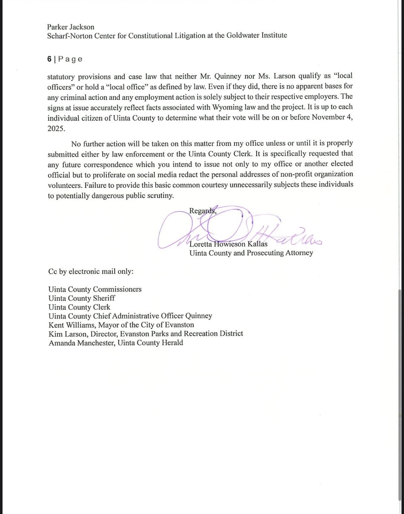 Uinta County Attorney Responds to Goldwater Institute Electioneering Complaint